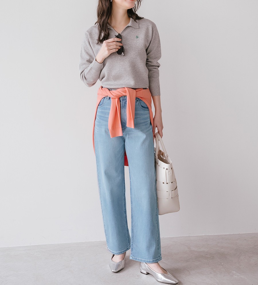 トレンドのワタリから下はややワイドにしたシルエットです。