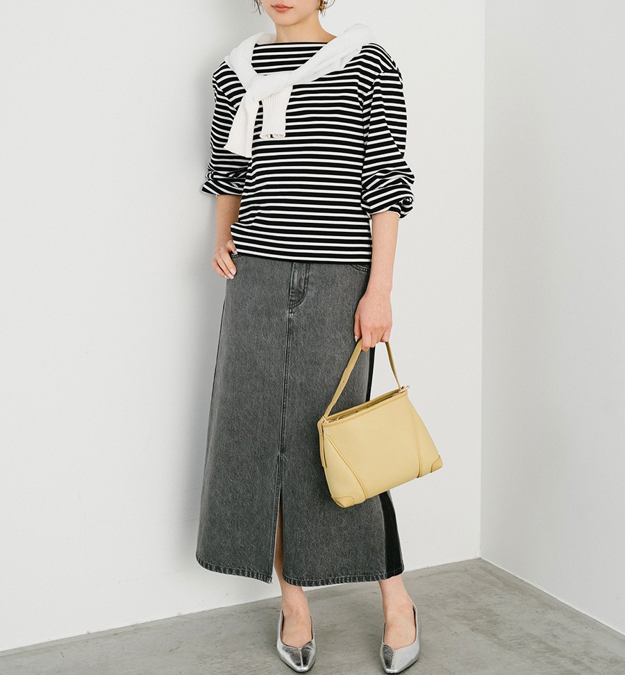 シーズンレスで活躍し、キレイ系から幅広いトップスと好相性です♪