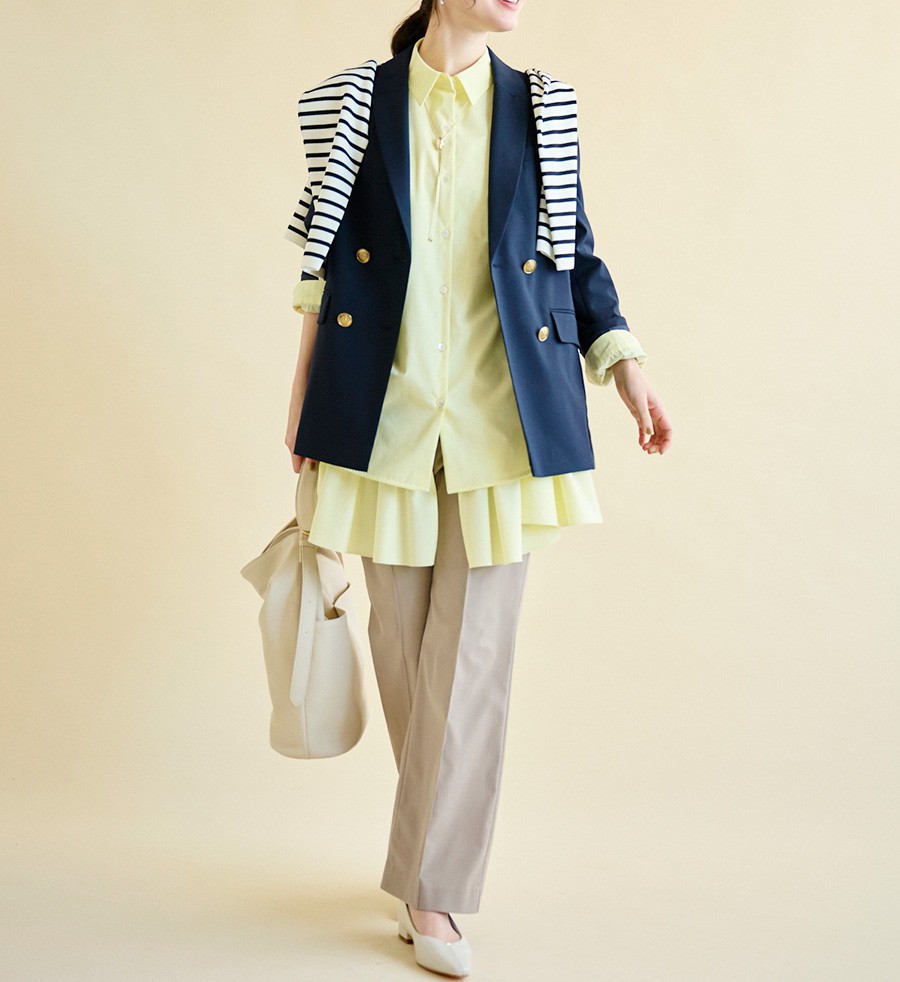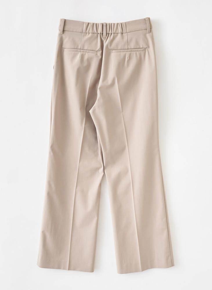 すっきりスタイルアップできるフレアシルエットとセンタープレス。
