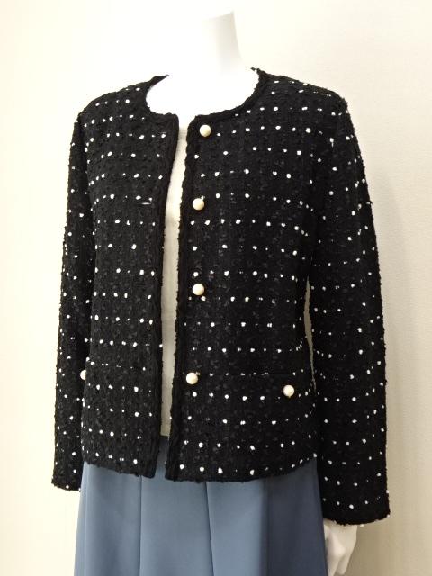GUAREE(クオリ)パールボタン付きツィードノーカラージャケット