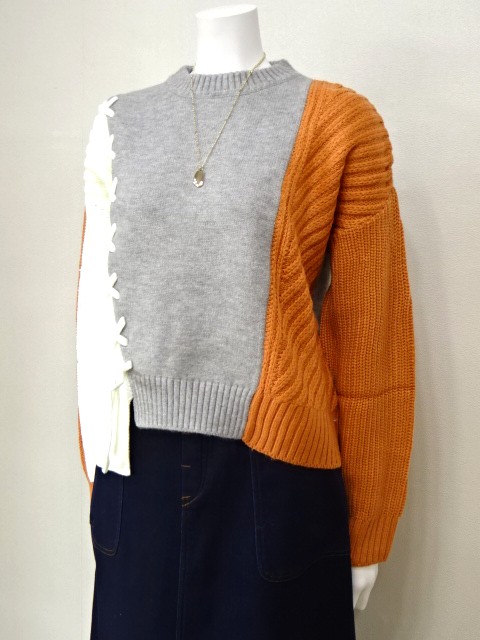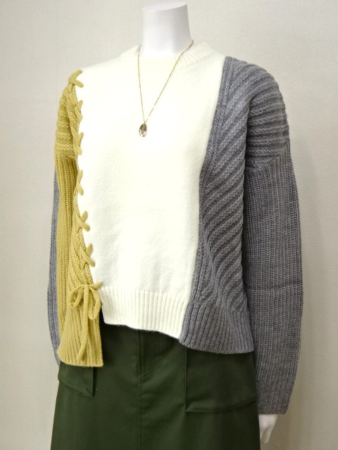 Comme une Femme(コム アン ファム)紐付き配色ニット