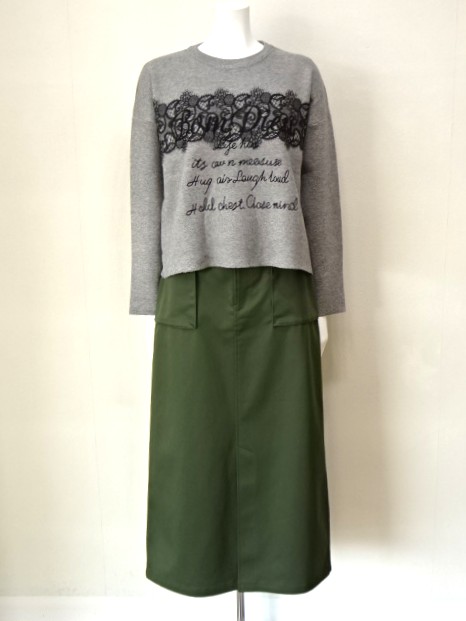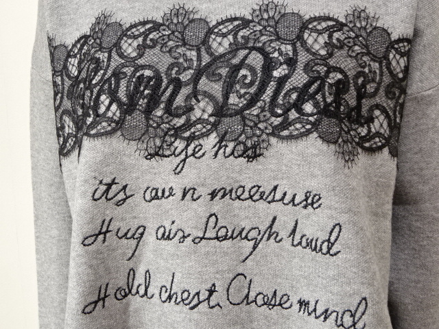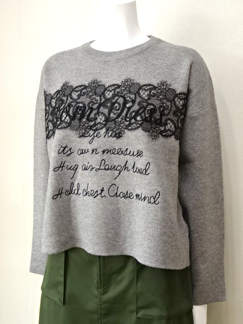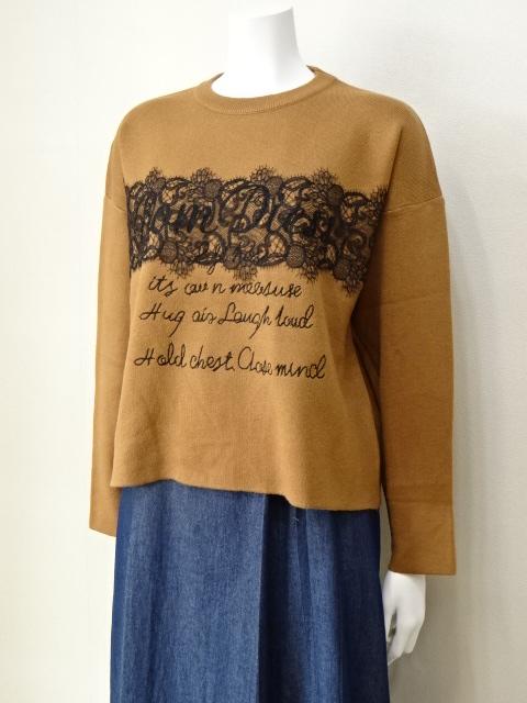 レースの下のロゴ刺繡重ねがお洒落なニット。