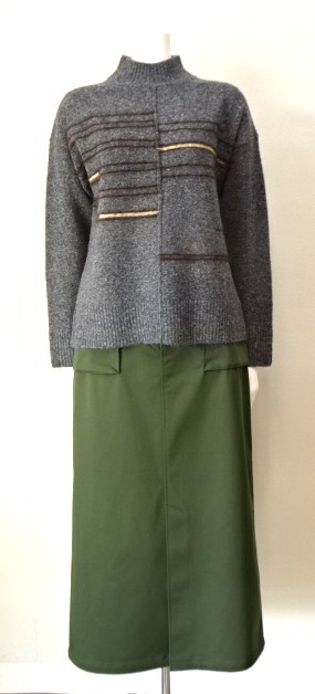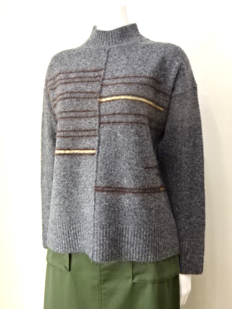 アシンメトリーなラインが印象的なハイネックニット。