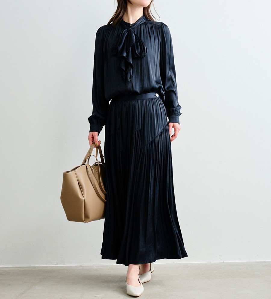 たっぷりのギャザーが、裾に向かって美しいフレアシルエットを形成♪