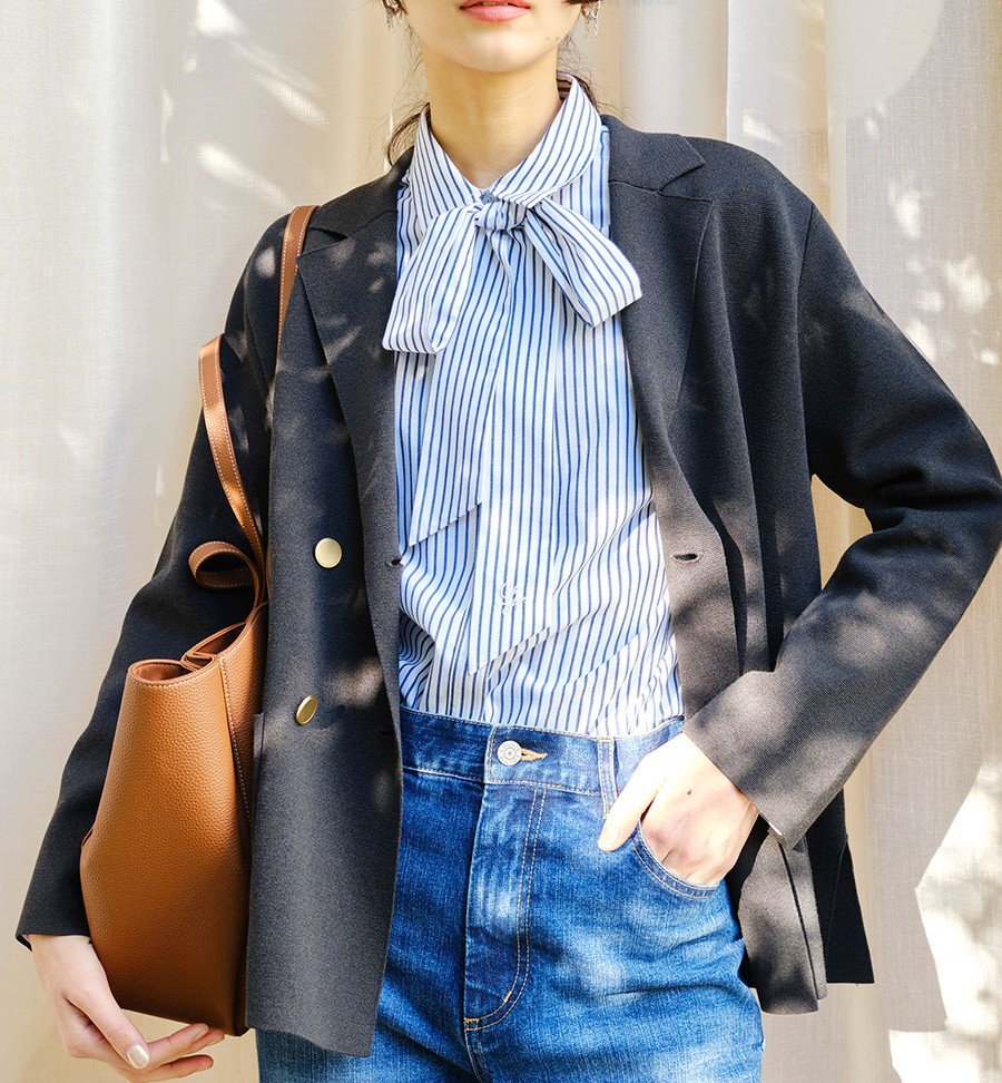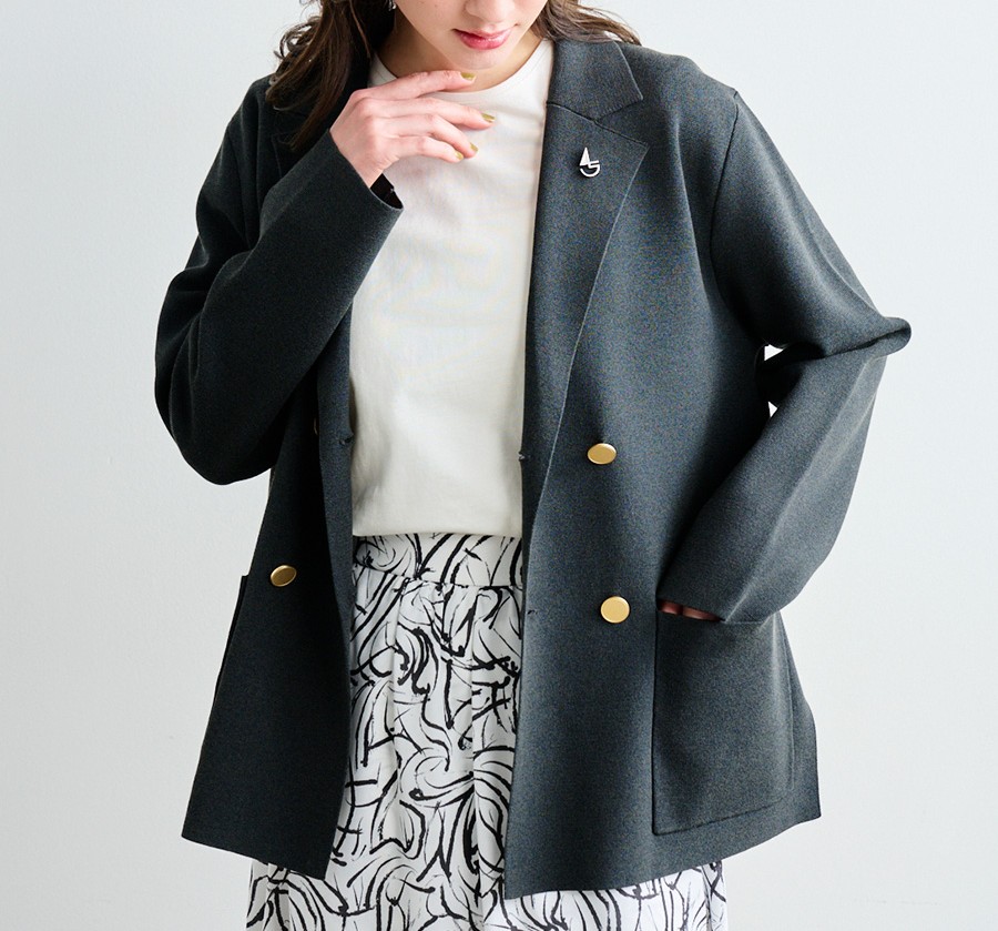 気軽に羽織れるニットジャケットは今季おすすめアイテム。