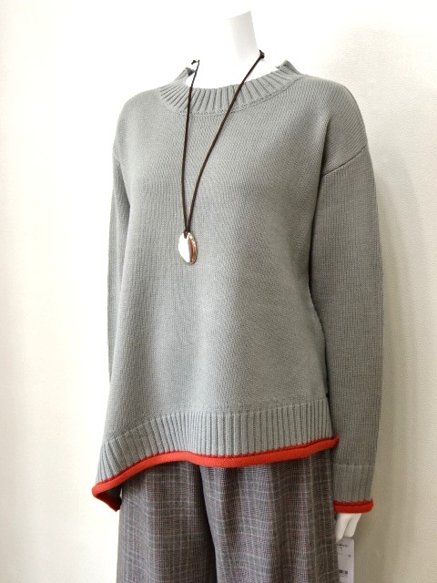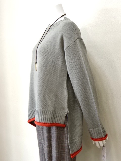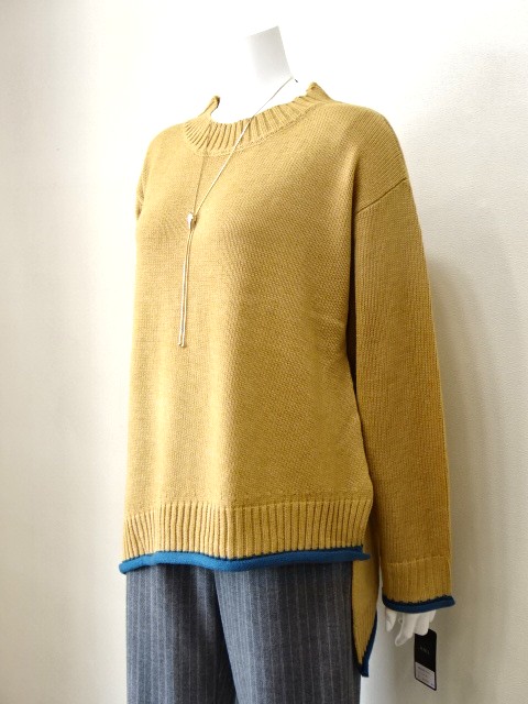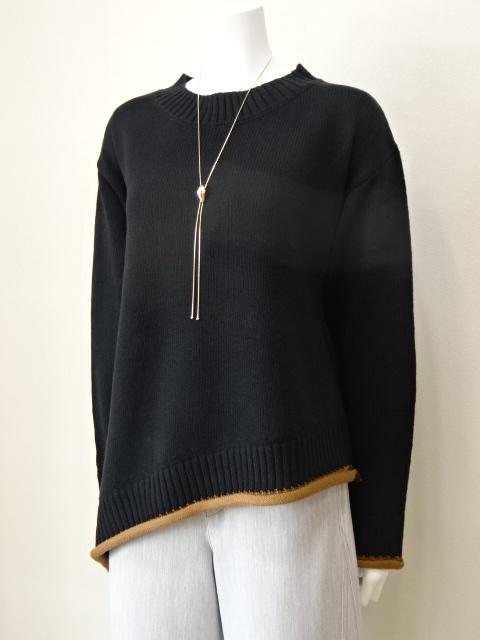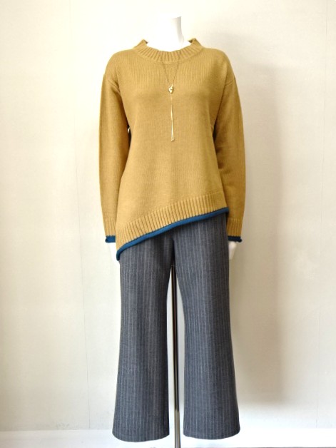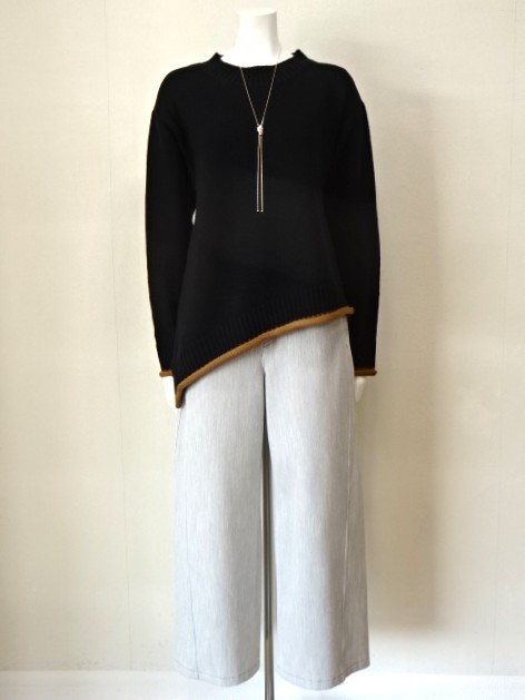 裾のアシンメトリーがリズム感あるニット。