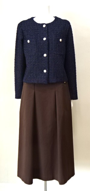PRICE:左、ニット16,500円、スカート20,900円、右、カットソー18,700円、パンツ20,900円(すべて税込)
