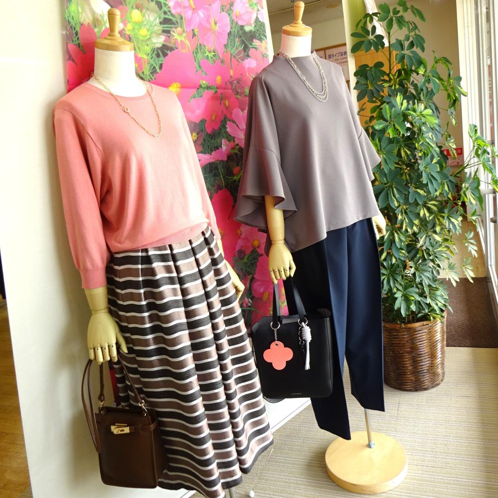 PRICE:左、ブラウス13,200円、スカート20,900円、右、カットソー12,100円、パンツ20,900円(すべて税込)
